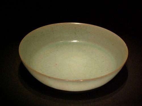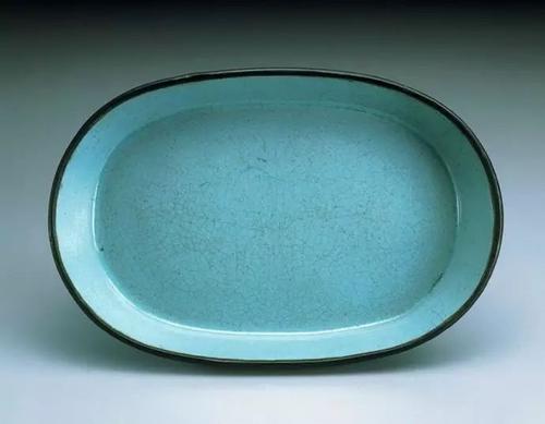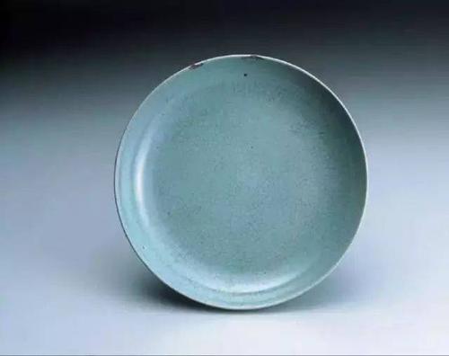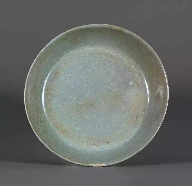 這件汝窯青瓷盤釉質瑩潤,其質感似絲綢般柔美。