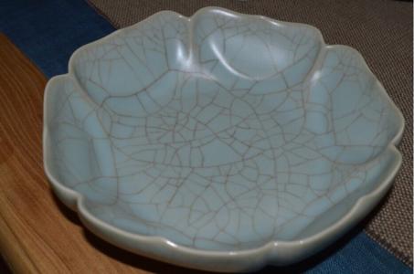 汝官窯天青釉色為主。但在不同的光照下和不同的角度觀察,顏色會有不同的變化。平常體會,在明媚的光照下,顏色會青中泛黃,恰似雨過天晴后,云開霧散時,澄清的藍空上泛起的金色陽光。而在光線暗淡的地方,顏色又是青中偏藍,猶如清徹的湖水。究其原因,是汝瓷瑪瑙入釉而致使釉面產生的不同角度的斜開片和寥若晨星,大小不一的氣泡對光照的不同反射而產生的不同效果。