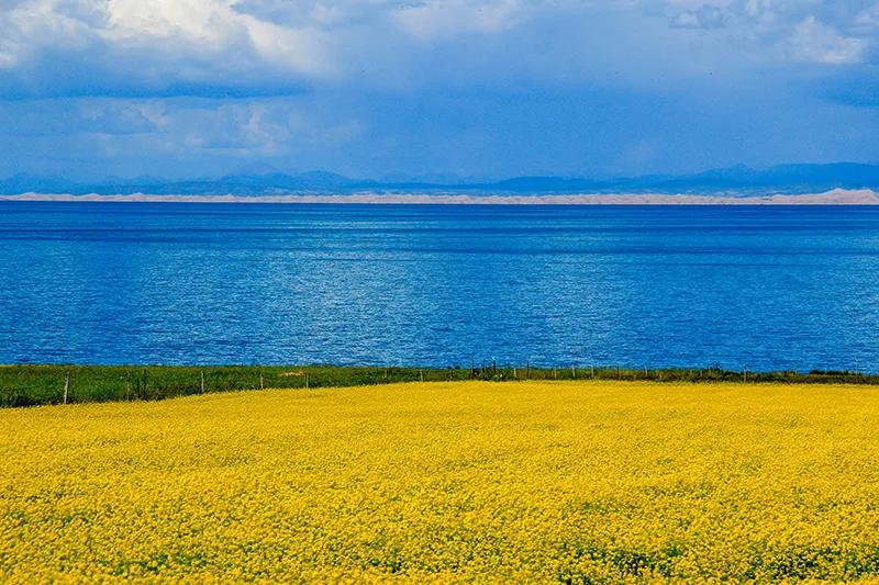 青海湖在不同的季節里,景色迥然不同。夏秋季節,當四周巍巍的群山和西岸遼闊的草原披上綠裝的時候,青海湖畔山清水秀,天高氣爽,景色十分綺麗。