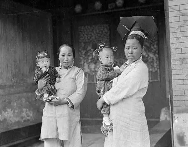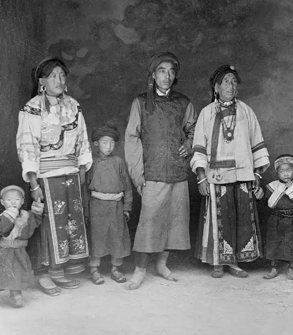1917年,四川省理縣,時任雜谷屯守備的高益齋(藏族)與妻子索黛玉及孩子。