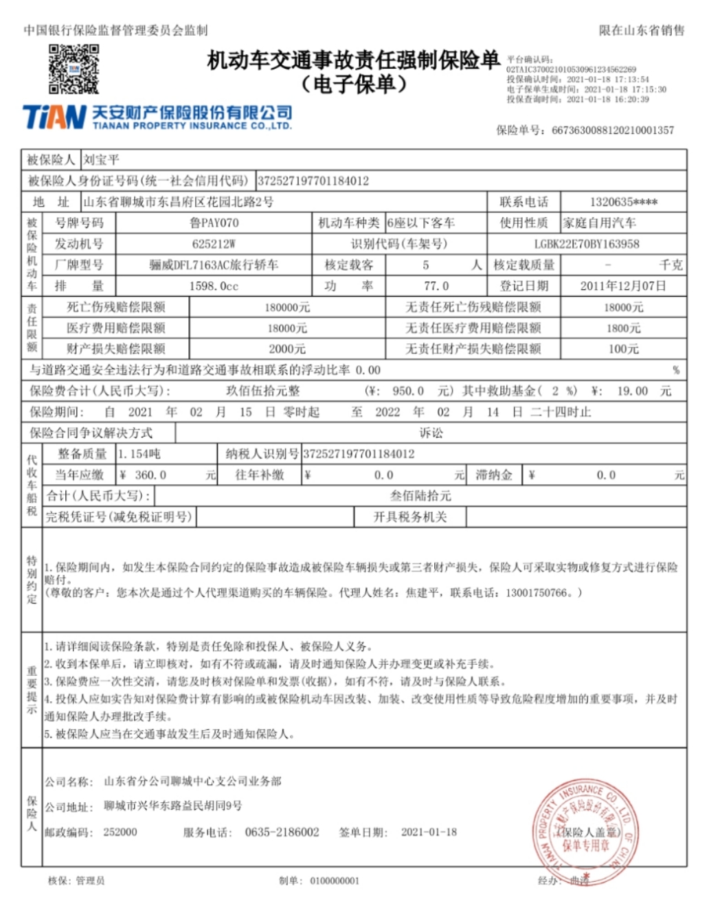 汽車保險||機動車交通事故責任強制保險單