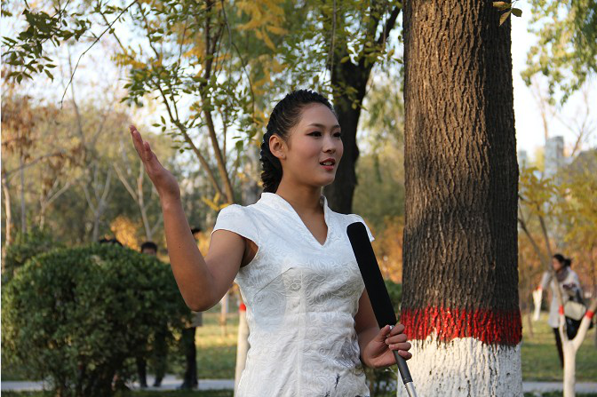 從下午2:20到5:20,在這個陽光明媚的下午,選手們或以歌聲或以戲曲吸引觀眾,或以武術(shù)展現(xiàn)自己,總之選手們各顯其能。經(jīng)過三個小時的拍攝,隨著夕陽西下,選手們帶著笑容離開公園,開始新一輪比賽的準(zhǔn)備。