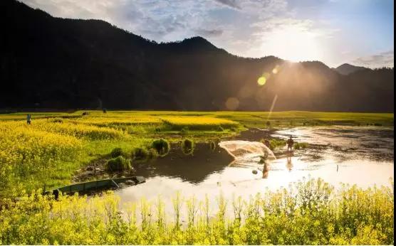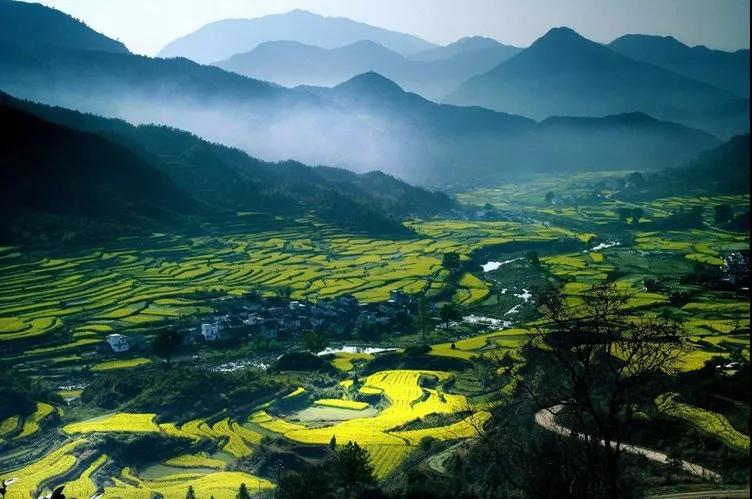 整個徽州便上演巨型的金黃色油菜花團體操...