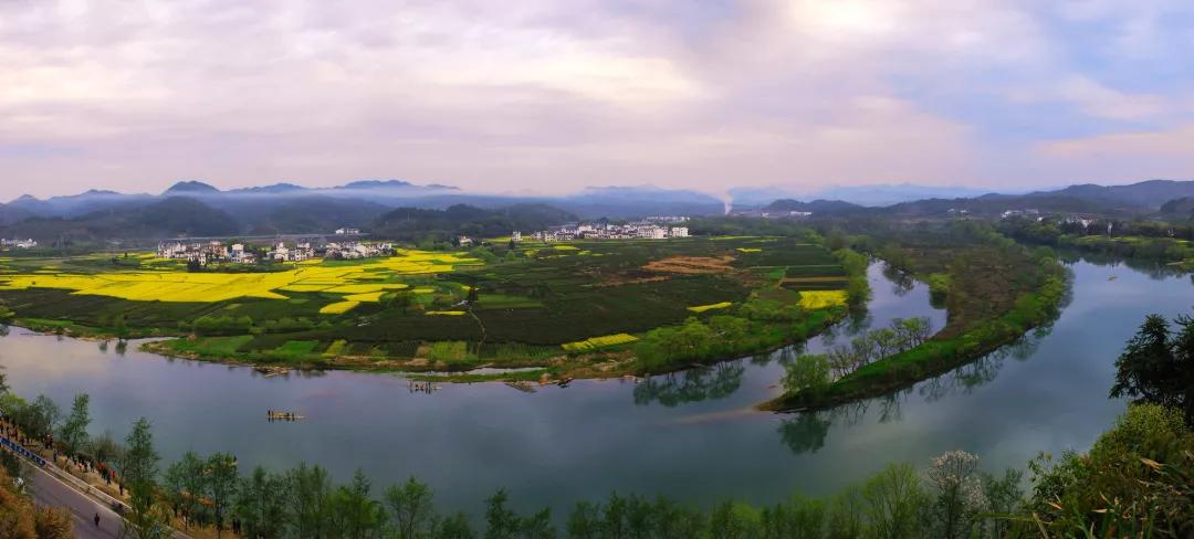 走進徽州,仿如步入油菜花的天堂,金黃綢帶是一條引向油菜花天堂的路。