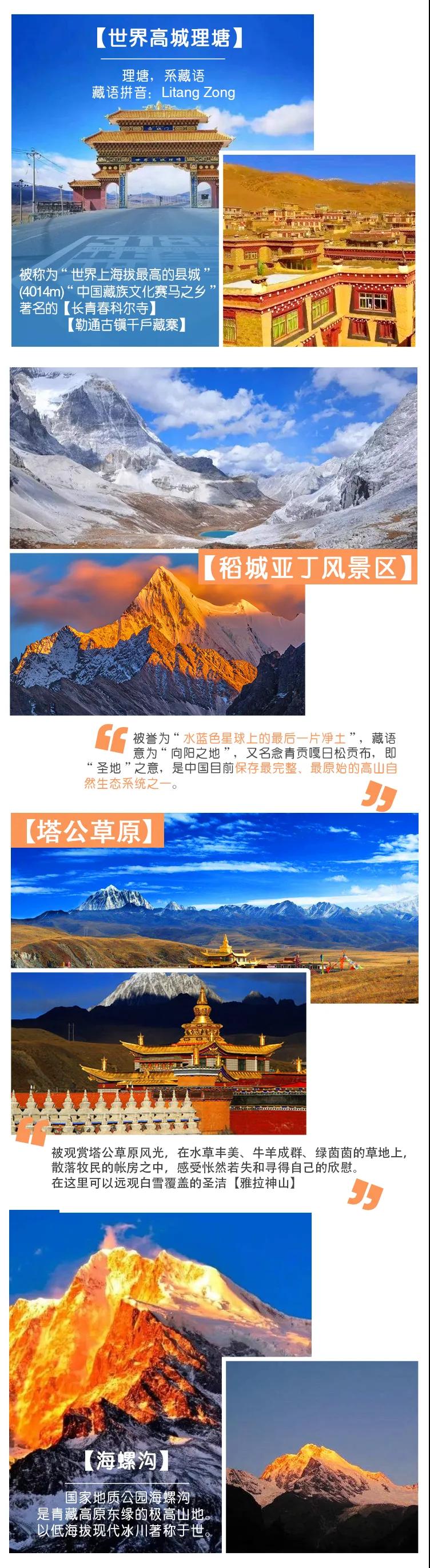 稻城亞丁+海螺溝冰川森林公園+墨石公園+新都橋+瑪尼河谷+塔公草原+理塘+日瓦+天路十八彎