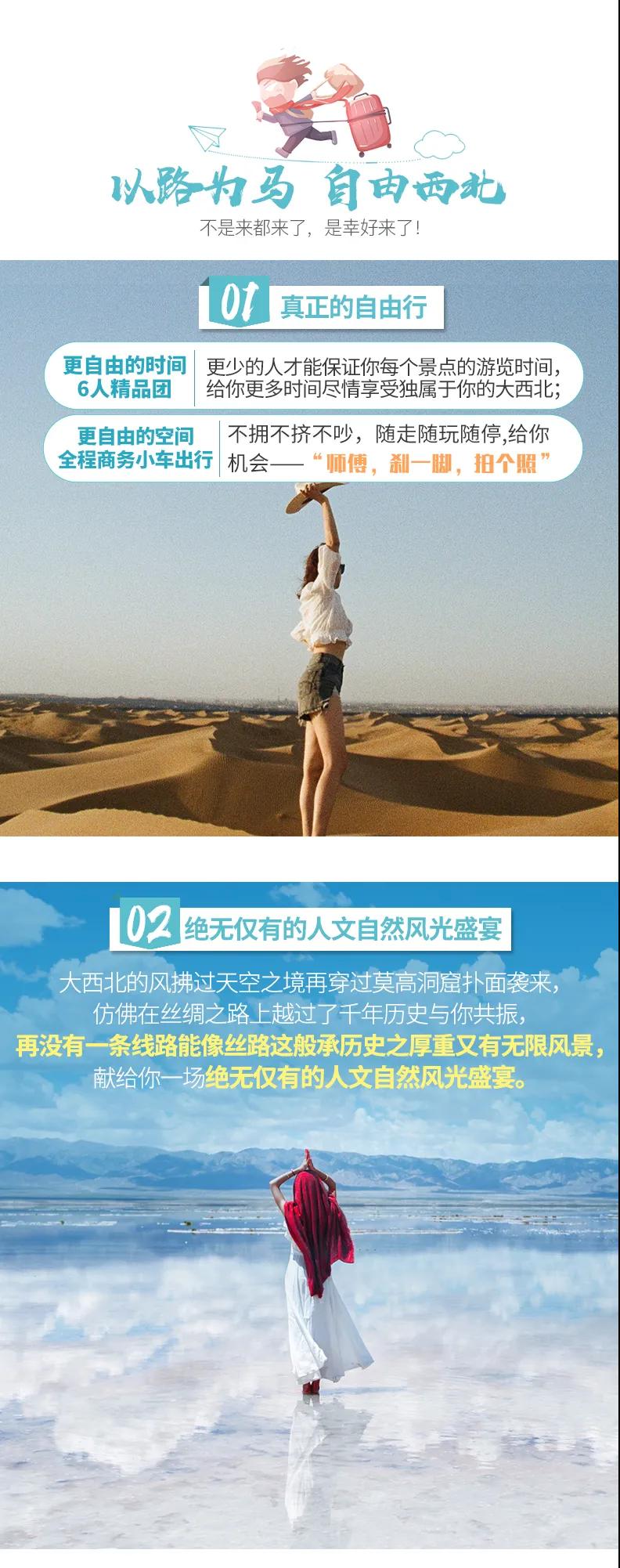 1、私人訂制:我們客戶范圍囊括了全國各大城市,川西、西北、東北,皖南,貴州,在路上永遠有我們的身影。我們將為每一個有定制需求的你策劃出獨屬于自己的完美旅行。