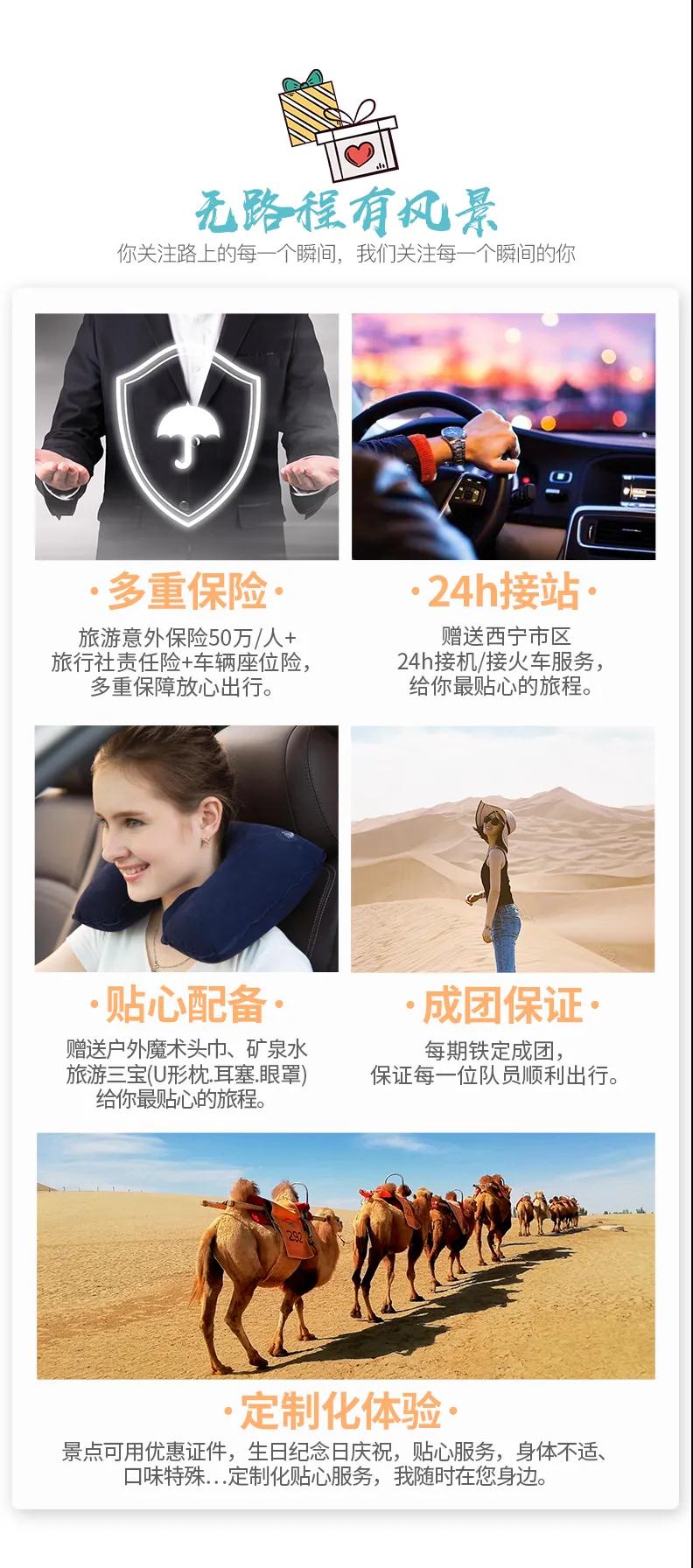 贈送 :贈送戶外魔術頭巾、旅游三寶(頸枕耳塞眼罩)、礦泉水;贈送西寧市區24小時接機/接火車服務。(贈送項目不用費用不退)
