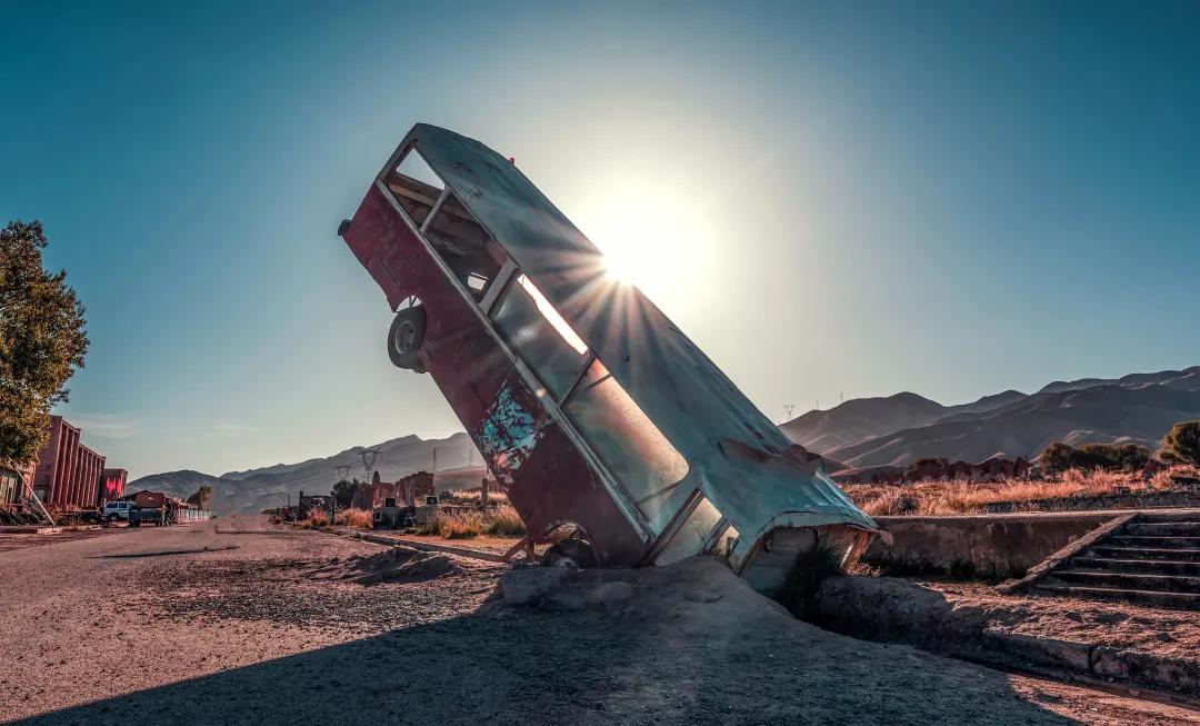 沿著開闊的公路前進,我們來到【阿克塞石油小鎮】,阿克塞石油小鎮原本是一個連名字都沒有,只有一個地級市的代碼404的神秘小鎮,1983年遭到不明原因的襲擊,荒漠中的繁華小鎮一夜之間變成了一座空城。后來因為大熱電影《九層妖塔》在這里取景,才漸漸為人所知。現在走在小鎮上,還依稀可見當初的幼兒園、醫院、禮堂、清真寺、教堂等建筑的廢墟,襯在一望無垠的戈壁上,顯得更加蒼涼玄幻。石油小鎮就像一座界碑,前方是沙漠,后方則是大片的草原和神圣的雪山,照片上雪山顯的很遠,實際上就在眼前,從廢墟中看去,仿佛罪魁禍首就是這座綿延的大山...