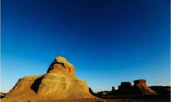 在這里你會感嘆大自然的鬼斧神工,許多世界著名建筑例如北京的天壇、西藏的布達拉宮、埃及的金字塔、獅身人面像、應有盡有,雕塑有大漠雄獅,有絲路駝隊,有艦隊出海。每個被侵蝕的雅丹都有它自己的故事,就盡情發揮自己的想象吧~當然,最美的是夕陽,許多人為一睹茫茫荒漠上的視覺盛宴,歷經辛苦來到這等待一場完美的落日。