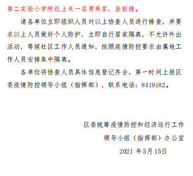請各單位立即組織人員對以上協查人員進行調查 并要求以上人員做好個人防護,立即自行居家隔離