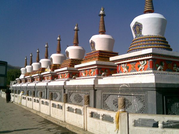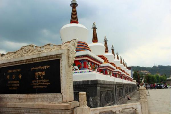 大拉浪由經堂、華門、牌坊3座殿堂組成,為漢藏合璧式建筑,是塔爾寺總法臺的居住處,達賴、班禪曾駐蹕于此。居巴扎倉(密宗學院)系藏式平頂建筑。曼巴扎倉、丁科扎倉屬漢藏結合建筑。寶塔數十座,其中并列于寺前的8座如意寶塔,方座,瓶形塔身,尖頂,根據釋迦牟尼一生重要經歷和傳說建成。 最后終于有了塔爾寺。