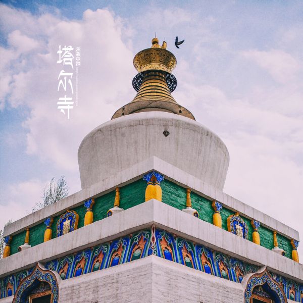 塔爾寺始建于公元1379年,距今已有600多年的歷史,占地面積600余畝,寺院建筑分布于蓮花山的一溝兩面坡上,殿宇高低錯落,交相輝映,氣勢壯觀。位于寺中心的大金瓦殿,綠墻金瓦,燦爛輝煌,是該寺的主建筑,它與小金瓦殿(護法神殿),大經堂,彌勒殿,釋迦殿,依詁殿,文殊菩薩殿,大拉讓宮(吉祥宮),四大經院(顯宗經院,密宗經院,醫明經院,十輪經院)和酥油花院,跳神舞院,活佛府邸,如來八塔,菩提塔,過門塔,時輪塔,僧舍等建筑形成了錯落有致,布局嚴謹,風格獨特,集漢藏技術于一體的宏偉建筑群。殿內佛像造型生動優美,超然神圣。栩栩如生的酥油花,絢麗多彩的壁畫和色彩絢爛的堆繡被譽為"塔爾寺藝術三絕",寺內還珍藏了許多佛教典籍和歷史,文學,哲學,醫藥,立法等方面的學術專著。每年舉行的佛事活動"四大法會",更是熱鬧非凡,游人如潮。