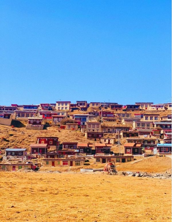 雖說山坡上的紅色藏寨不如色達的密集宏偉,但來到這里還是被驚艷到了。