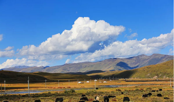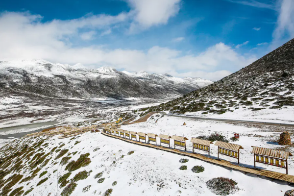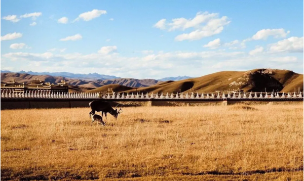冬日時節的草原轉成了一片金黃,常有大雪紛飛落下,又換上純白的雪地模樣,草原環繞,雪山相伴,更添神秘色彩。