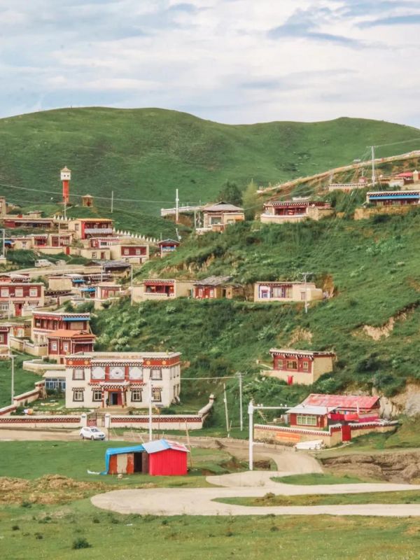 分散在山腰處的小紅房子,看起來別有一番風味,就像是被遺忘的秘境,在這片草原上寂靜的生長著。
