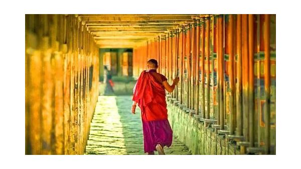 這里擁有世界上最長的轉(zhuǎn)經(jīng)長廊,共有1700多個轉(zhuǎn)經(jīng)桶,環(huán)繞整個寺院,綿延3.5公里長,要轉(zhuǎn)完所有的轉(zhuǎn)經(jīng)筒,大約需要兩個小時。