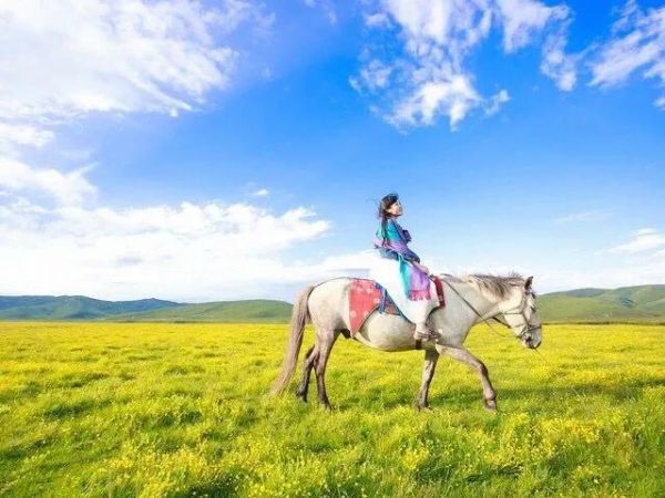 找一家桑科草原上的蒙古包,跟主人商量好價錢(一般20元就可以搞定),挑一匹好馬,就可以在草原上馳騁了。