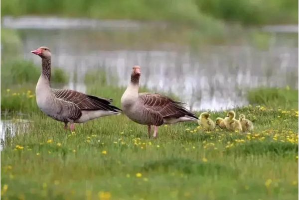 黃鴨、溪鷗、黑頸鶴成群結(jié)隊地棲息在湖畔,旱獺、灰兔時不時出來露個臉,歡快的百靈鳥在空中翻飛,身在其中,仿佛進入了夢幻的動物王國。