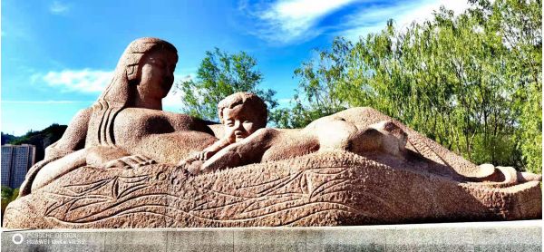 隨后,我騎著哈啰共享電車,騎了大概四十多分鐘來到了黃河風情帶,見到了黃河母親雕塑!