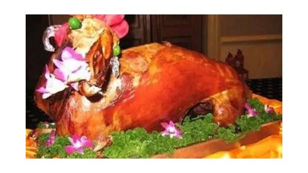 烤全羊,安固里最有名的一道大菜,只有招待貴客的時候才會有這個。先選一只半歲左右的肥羊羔子,抹脖子放血,拉花刀以后放在已經升好的炭火上來回熏烤。等到羊熟到身上的油噼里啪啦的往火里掉的時候就把調好的調料均勻地刷在羊身上。壩上烤全羊是烤熟一層吃一層,大概要吃上7 8層方能吃干凈,最香的就是烤到最后啃骨頭,那才是最好吃的。