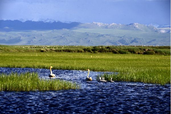 每逢春末夏初,冰雪消融,大地復蘇,旅居在印度、緬甸、巴基斯坦甚至遠到紅海和地中海沿岸諸國的天鵝和雁鷗,不遠千里成群結隊地飛到這里筑巢、換羽、求偶、生兒育女、棲息繁衍。這就是我國著名的巴音布魯克天鵝湖自然保護區。