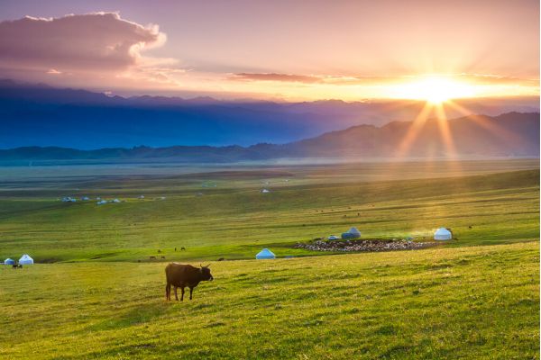 早起拍賽里木湖日出,后乘車參觀游覽果子溝大橋。