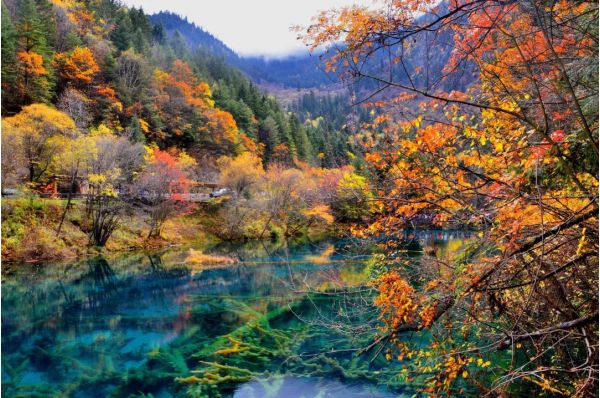 隨著季節(jié)的變化,九寨溝也呈現(xiàn)出不一樣的風(fēng)姿。初春時(shí)節(jié),各色杜鵑、山桃花、野梨花相繼吐艷,夾雜著嫩綠的樹木新葉,整個(gè)林海繁花似錦;盛夏則是一場綠的聚會(huì),新綠、翠綠、濃綠、黛綠,豐富而富有旺盛的生命力;深秋的九寨溝更是享譽(yù)世界,只見漸次經(jīng)霜的彩林深淺相間、錯(cuò)落有致,是“萬山紅遍,層林盡染”的最佳寫照,在漫山遍野濃烈的紅襯托之下,碧水更綠、藍(lán)天更藍(lán),呈現(xiàn)出光怪陸離的水景;待入冬,莽莽林海都覆上皚皚白雪,林海雪原似玉樹瓊花,潔白、高雅,是觀賞九寨六絕之“藍(lán)冰”和“雪峰”的最好時(shí)機(jī)。