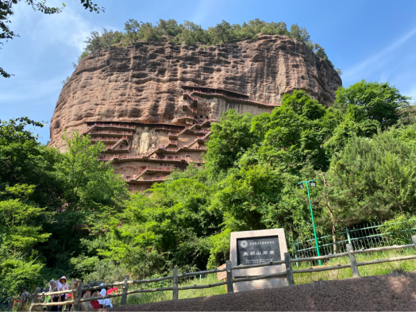 麥積山因山形似麥垛而得名。麥積山石窟始建于384-417年。存194個(gè)窟龕、7000多尊造像、1000平方米壁畫,被譽(yù)為東方雕塑藝術(shù)陳列館。是我個(gè)人非常喜歡的景點(diǎn),集人文、風(fēng)光于一身,兼具知識(shí)性與趣味性。