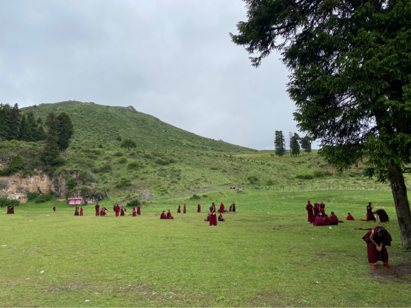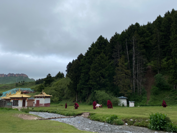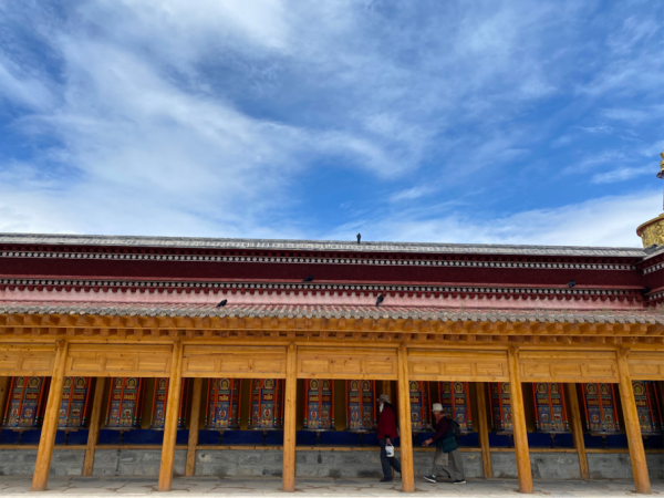 因?yàn)楹筮呌懈蟮睦防闼拢圆痪唧w介紹了。相較而言,郎木寺可以更好地觀察僧人的生活,小僧人們打羽毛球、放風(fēng)箏、修房子干啥的。拉卜楞寺建筑更宏大,管理更規(guī)范,這方面看不到。這邊還有個(gè)峽谷,但是過(guò)于濕滑,就沒(méi)走了。轉(zhuǎn)經(jīng)筒出口的門有點(diǎn)低,頭頂撞了一個(gè)包,寧波爺爺說(shuō)是撞大運(yùn)了。