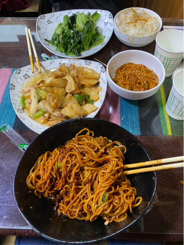 不過(guò)空氣總算清新,游覽結(jié)束,回到住處。帶著團(tuán)里的叔叔阿姨們?nèi)ァ半]源小灶私房菜”吃飯。當(dāng)?shù)厝撕芏?,等上菜半小時(shí)有余,砂鍋豆腐和牛奶雞蛋醪糟不錯(cuò)~紅油實(shí)在吃不慣,無(wú)奈接下來(lái)幾天川菜口味居多。