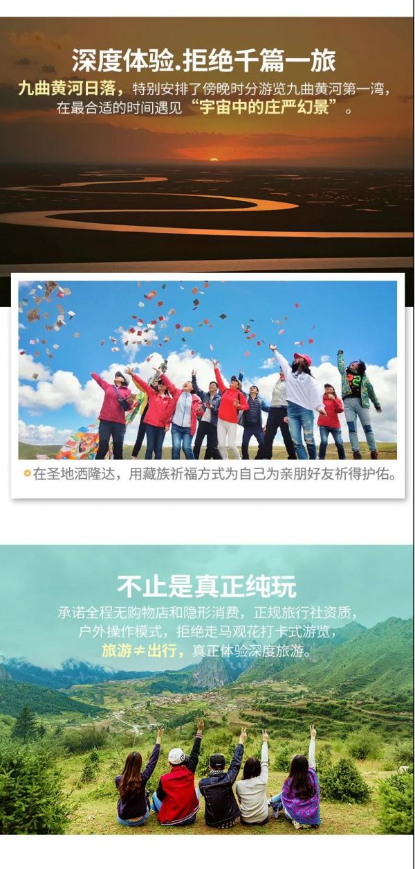 5、進入藏區,沿途有很多便攜廊橋(木、鐵、水泥等)、經幡懸崖、湍急的河流等,切勿前往拍照和逗留;如遇見小動物如小狗、牦牛、馬、松鼠等,切忌不要引逗;沿途拍照游覽時,請游客注意過往車輛,切勿橫穿馬路或是在公路中間逗留拍照等;我們行程中及景區游覽均為自由行,所以請大家對自己的人身安全負責,若在游覽時存在跌落摔倒、打架斗毆、高原反應、動物咬傷、游泳或擅自進入景區未開發區域等危險動作,我方不承擔因此帶來的一切損失及賠償責任,望您諒解。
