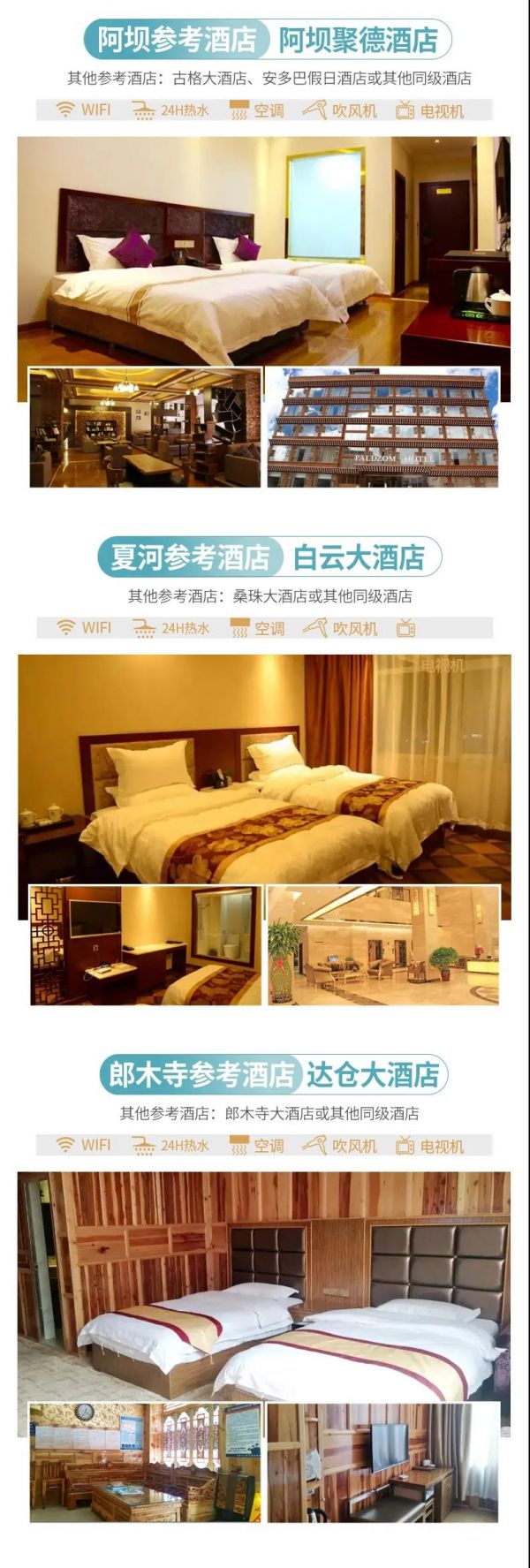 l 夏河:夏河白云大酒店、桑珠大酒店或其他同級酒店