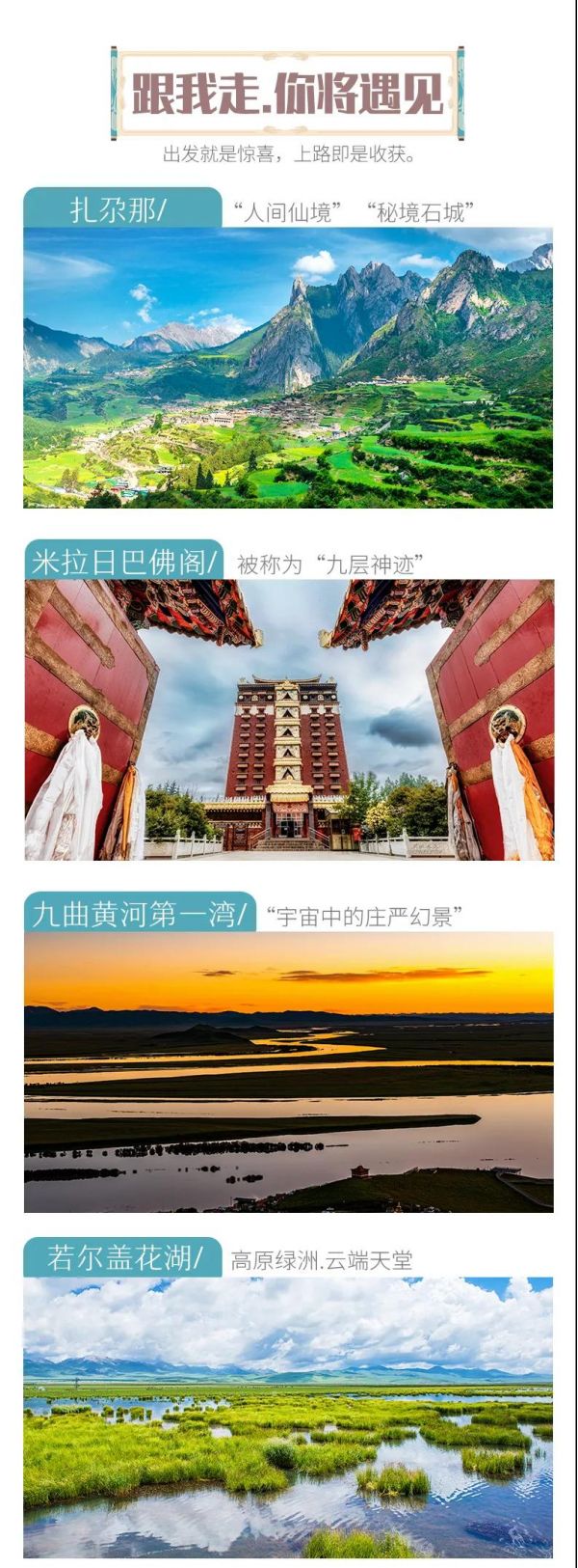 扎尕那+拉卜楞寺+若爾蓋花湖草原+米拉日巴佛閣+蓮寶葉則+郎木寺+尕海湖+九曲黃河第一灣日落+阿萬倉濕地
