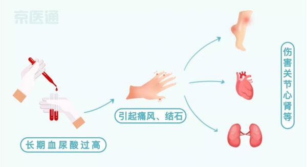注意:有些患者沒有出現痛風,但也會引起心、腎損害等。