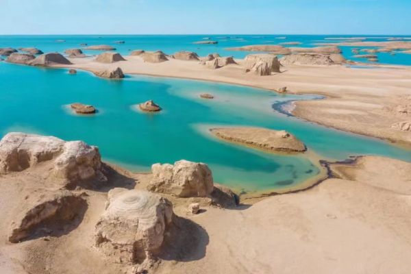 從茶卡鹽湖出來后到茶卡鎮吃午飯,之后來到美麗的【翡翠湖】 ,在藍天白云的映襯下,猶如一塊塊美玉散落在人間,非常的迷人。晚上我們將前往【大柴旦】入住酒店休息。(翡翠湖距大柴旦30分鐘車程,夕陽下拍倒影最佳。)