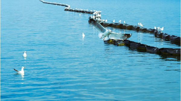 清晨,這里的海鷗全部集中在一起,當(dāng)游客靠近之時,它們成群結(jié)隊(duì)地離開水面飛向遠(yuǎn)處,不一會兒又全部飛回來,落入水中,時而盤旋飛舞,時而在水中嬉戲,一幅生動的畫面展現(xiàn)在眼前。