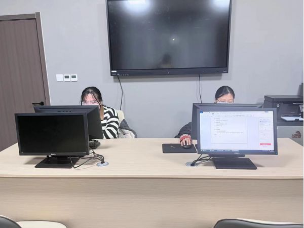 晚上6:00,唐靜雯和邢雯慶來到了實(shí)訓(xùn)室。唐靜雯給邢雯慶安排了工作,邢雯慶幫唐靜雯一起完成了劉老師交代的任務(wù)。6:40,唐靜雯和邢雯慶一起離開實(shí)訓(xùn)室。苗苗在完成劉老師下午布置的表格任務(wù)。