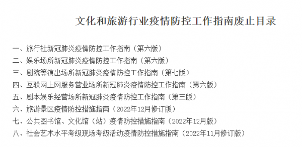 01文旅部:落實(shí)新型冠狀病毒感染“乙類乙管”,做好文化和旅游行業(yè)疫情防控工作