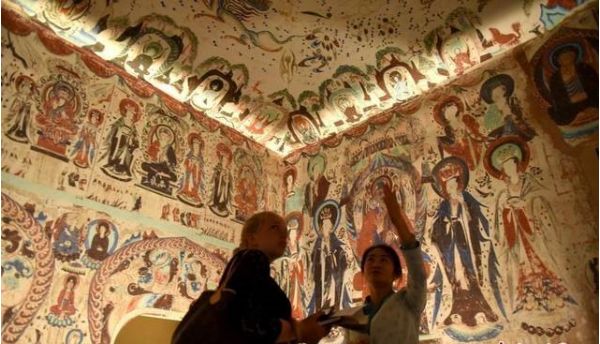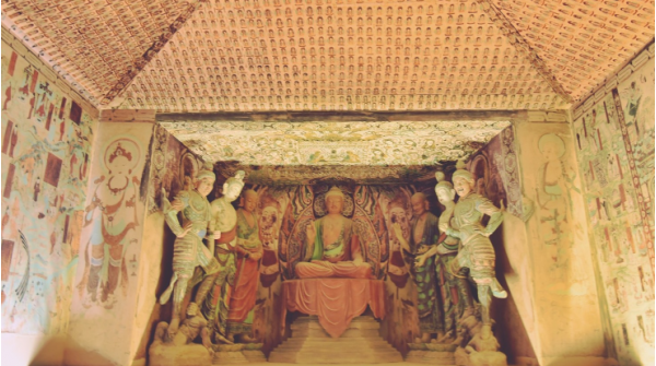 莫高窟,坐落于河西走廊的西部盡頭的敦煌。它的開鑿從十六國(guó)時(shí)期至元代,前后延續(xù)約1000年,這在中國(guó)石窟中絕無僅有。它既是中國(guó)古代文明的一個(gè)璀璨的藝術(shù)寶庫(kù),也是古代絲綢之路上曾經(jīng)發(fā)生過的不同文明之間對(duì)話和交流的重要見證。