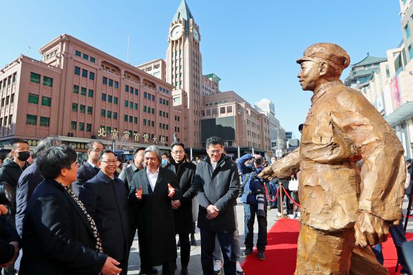 3月1日,由中國美術(shù)館、北京市東城區(qū)委、東城區(qū)人民政府共同主辦的“把雷鋒精神代代傳承下去—紀(jì)念毛澤東等老一輩革命家為雷鋒同志題詞六十周年”活動(dòng)在北京王府井步行街舉行。活動(dòng)現(xiàn)場,全國政協(xié)常委、民盟中央副主席、中國美術(shù)館館長、中國美協(xié)副主席吳為山與東城區(qū)委書記孫新軍共同為雷鋒同志銅像揭幕。