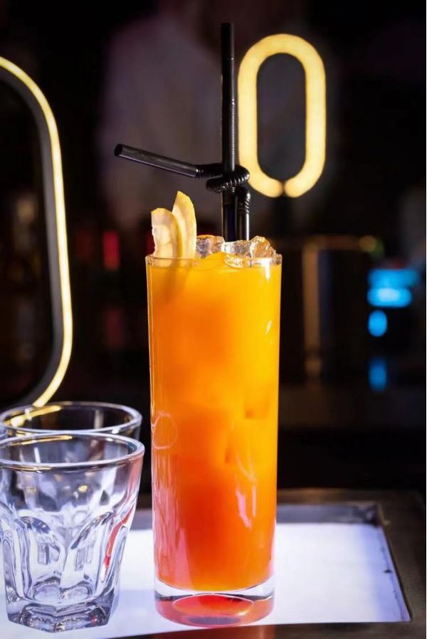 雞尾酒顏色奪目動人,喝起來度數也不低哦 但是好在口感特別好,果香味很濃 也沒有過于甜膩或者特別沖的酒精味
