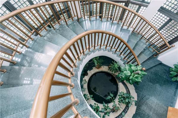 挑高的閣樓內,一條螺旋樓梯盤旋而上,底部水池綠植密布,公共空間幾本閑書、兩張舊桌椅,隨時迎接著客人的小憩。