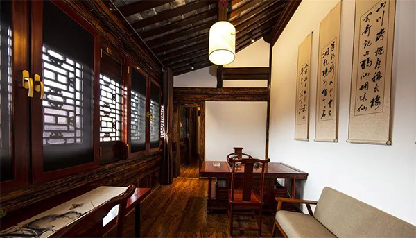 尤其數(shù)面照壁上的山水畫卷,讓客棧的空間更顯寬闊和立體。