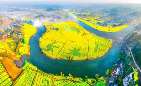 陳摶故里景區集賞花踏青、田園觀光、農科研學、康養休閑于一體。除賞花外,游客登上景區里的陳摶山,可以遠眺依靠植物打造的巨幅太極八卦圖、太極拳、仙鶴圖等大地藝術圖案。