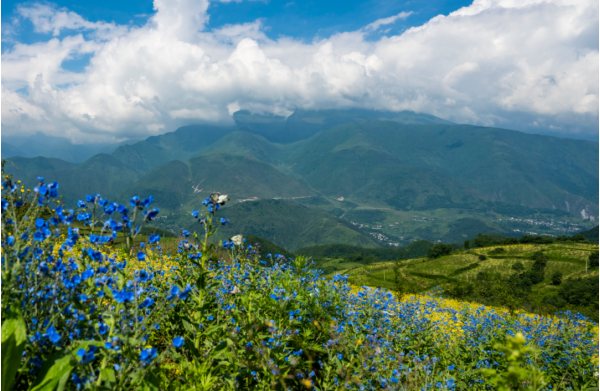 最近,在越西發現了一處絕美的“仙境”,藍紫色的野花繁星似地密布在,沒過膝蓋的綠草之中成群的蝴蝶在其間翩翩起舞。