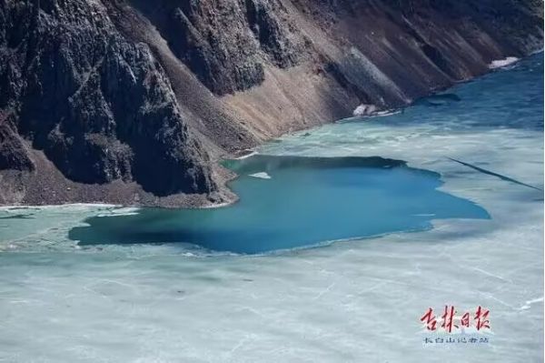 冬季水面結冰,白雪覆蓋。夏季,冰融化了,湖水變成了藍色。如今長白山天池水面破冰融化迎來“開冰期”。開冰時節,湛藍的天池水與潔白的冰凌形成水波流轉、冰花碰撞的奇特美景。