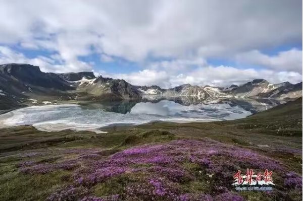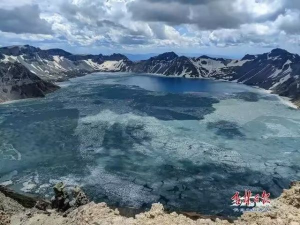 由于今年氣溫偏低,天池開冰又屬于“文開”,6月16日,冰封半年的長白山天池正式開冰,天池全面融化的時間在22日,經歷了7天的時間。湖面上的冰層隨著氣溫的升高,逐漸變薄、破碎、融化,猶如美麗的少女揭開神秘的面紗。作為一個獨特的天氣現象,深受攝影師和廣大游客的喜愛。