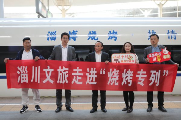 4月8日,燒烤專列G9321次列車從濟(jì)南西開往淄博,淄博市文化和旅游局局長宋愛香帶領(lǐng)10個區(qū)縣、功能區(qū)文旅局長及33家熱門景區(qū)負(fù)責(zé)人組成的淄博文旅團(tuán)登上燒烤專列,向乘客推介淄博市文旅資源,發(fā)送旅游紀(jì)念品、優(yōu)惠券等,受到游客的熱烈歡迎。淄博齊山景區(qū)市場營銷部負(fù)責(zé)人許俊杰在這趟列車上,感受到了“大學(xué)生組團(tuán)”到淄博燒烤的熱情和善意。在高鐵站、網(wǎng)紅店牧羊村燒烤等地,大學(xué)生們雙手接過他遞過去的宣傳折頁,都跟他說“謝謝”。許俊杰說:“我作為淄博旅游從業(yè)者,內(nèi)心非常感動,現(xiàn)在的年輕人素質(zhì)都很高。以前活動發(fā)放宣傳折頁的時候,很多人都是看了就扔掉或者直接拒絕,但是這一次我看到幾乎所有年輕人都認(rèn)真看上面的內(nèi)容,還主動向我咨詢有關(guān)淄博景區(qū)情況。”