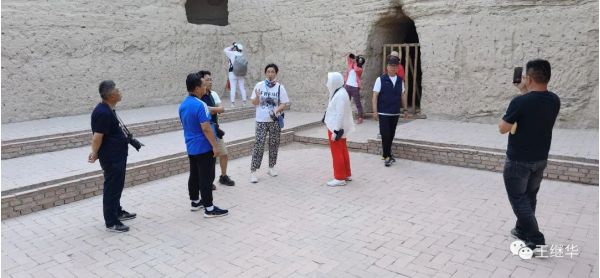 我們到了交河古城,趕上景區還是剛剛下班。領隊劉總和保安交流,保安不敢當家,打電話請示所長,所長派經理過來和劉總交流了一番。最后經理親自開車帶我們進入景區。還真的非常感謝和佩服劉總這個曾經受過吳儀親自在人民大會堂接見過的中國優秀導游員。