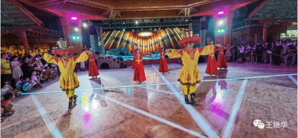 出來景區已經天黑了。我們繼續前行準備住吐魯番市。司機兼導游的馬曉飛是回族,他說今天是古爾邦節,也就是回民的小年,中午吃飯的時候大家都敬了他一杯酒祝福節日快樂。喝到高興處,他不由自主的跳了一段少數民族舞蹈。